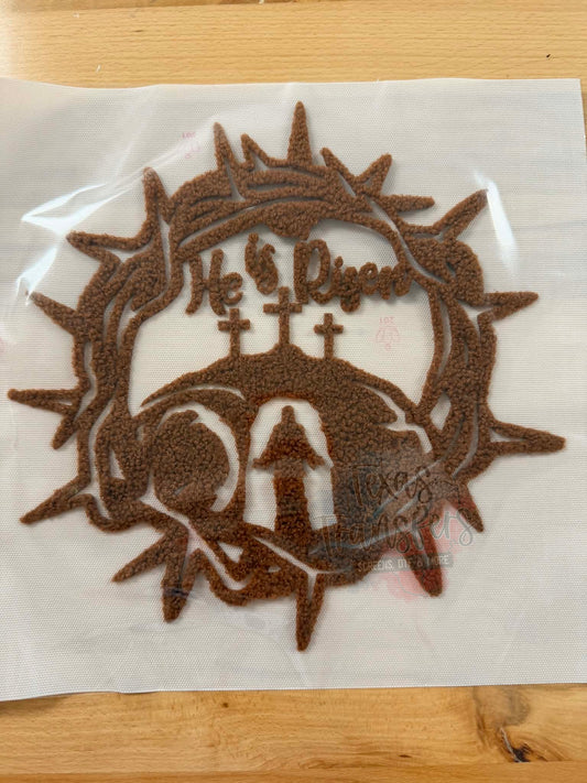 He is Risen Brown Fluffy Fuzzy XL Iron-On Patch