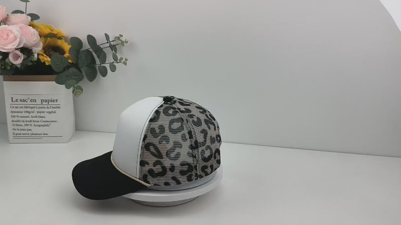 Black Brim Leopard Mesh Premium Trucker Hat